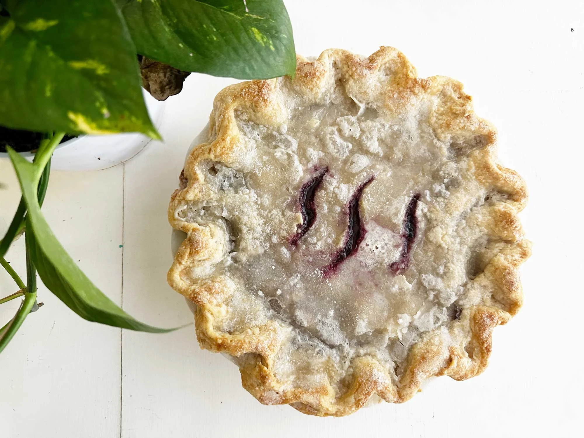 Blackberry Pie is the pie of beautiful contradictions. The blackberries are tangy and turn sweet when combined with granulated sugar. The crust is buttery and crispy, complemented by a soothing, juicy filling. Recommended to be served slightly warm, it is irresistible when paired with cold vanilla ice cream.