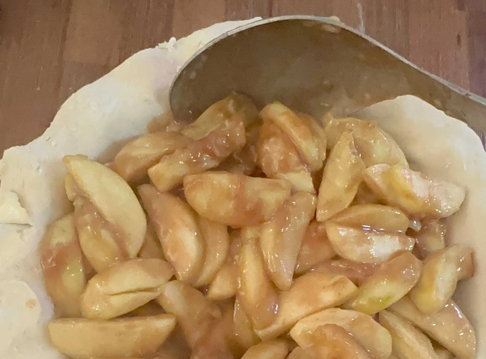 9. Pour in the hot apple filling.
